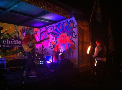 We are branded with our wrist tags and enter the festival and deposit Jenna’s things into the musicians tent and OMG it’s strangely quiet. What is going on here? The festival is made up of an inside stage and a garden stage, where Jenna is to play. And right now the garden stage has four people in it FOUR? Oh no, let us hope it begins to fill up by the time Jenna is on at 11pm. We sit outside watching the first act which is a trio of sisters from somewhere up north, a harp and accordion and a violin. Their first song ends and as their second begins so too does whoever is in the indoor stage and boy is there a clash. One can no longer hear the trio and the atmosphere become rather awkward and uncomfortable as the small crowd begins to look around and chatter quietly about the disruption. The trio can no longer be heard. The sound chicks rush over all apologies and the first act has decided to call it quits. Well that is shockingly poor organising if ever I saw it and those poor women having traveled so far to play one and a half songs! Next up is Ivy Joe or something along those lines and to be totally fair they’re not so bad but the female singer’s voice is irritating beyond belief undulating and pitchy, it is a relief when they finally finish. A short break and it is time for Jenna Murphy. To mine and probably everyone else’s relief a crowd has finally emerged for her act and her friends and family wait in anticipation for her to begin. In true Jenna Murphy fashion she is fucking amazing, so much so that the local fire twirling artists decided to perform their acts in front of her stage while she performs. When she comes to a close after only four songs the crowd is hungry for more. However management finishes her in readiness for the headlining act the Irish band The Walls, but to everyone’s bitter disappointment.